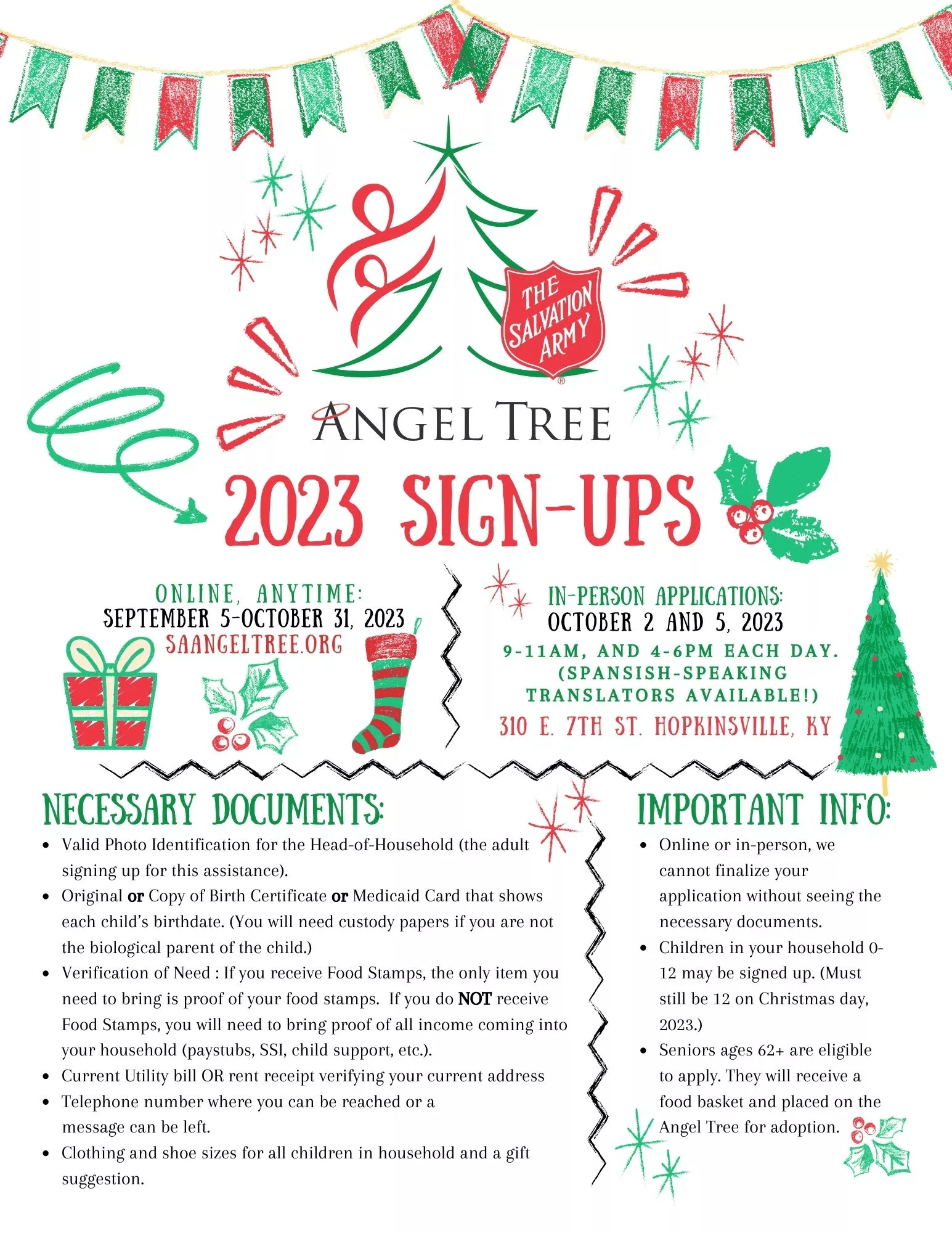 Families needing assistance this holiday season can sign up through the end of October to receive support from the Salvation Army in Hopkinsville.