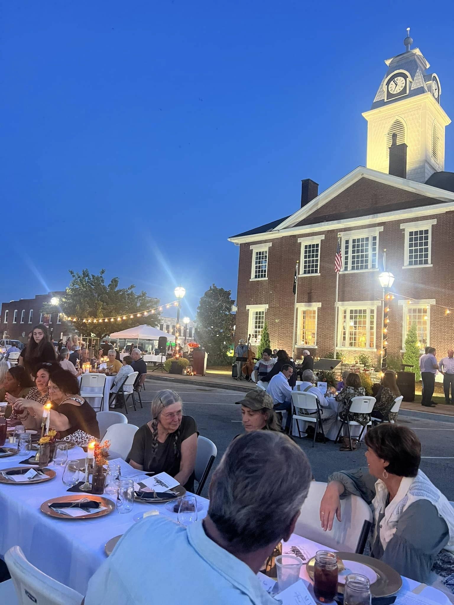 Friday evening, September 22, 2023, saw the northern side of the Elkton Square transformed into a scene that would make any Hallmark movie enthusiast smile gleefully. The event, “A Farm to Fork Dinner” sponsored by the City of Elkton and benefiting the Historic 1835 Todd County Courthouse, culminated in an evening described as “fabulous” by one in attendance. Mrs. Vicki Hall Kennedy, a native of Elkton and the daughter of the late Billy Vick and Harriet Holland Hall posted, “It thrilled my soul to join in the blessing with the wonderful people of Todd County. Our small town is the very heart of America.” Another former Todd Countian, Renee Brizendine Gill, added, “Over 200 friends gathered in front of the 1835 Old Courthouse for a delicious meal honoring agriculture, showcasing Todd County history, and raising funds for our iconic town center.”