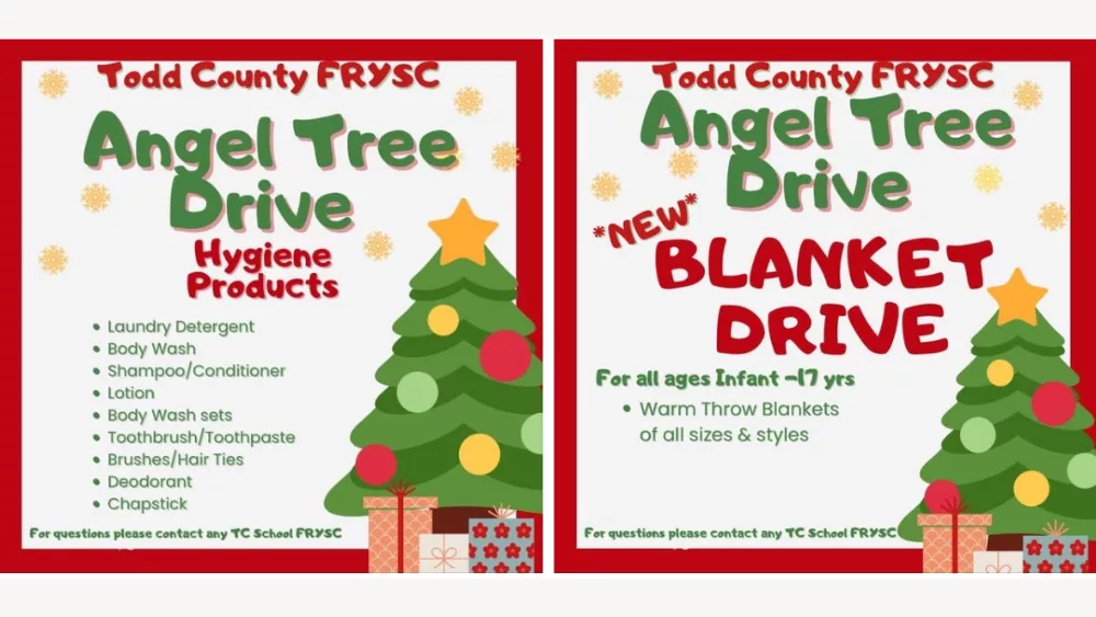 From now until Sunday, Dec. 15, the Todd County Family Resource and Youth Services Center is collecting toys, blankets and hygiene products to help children and families during the holiday season.