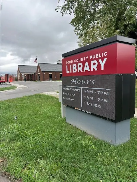 Since its opening last October, the library has seen the addition of electricity to an electronic sign from Trio Signs of Hopkinsville that welcomes visitors to the library while also promoting activities occurring at the library. The building has also seen the addition of lighting on the back parking lot area. The lighting, which provides illumination that covers the back parking lot as well as the two sides, adds to the safety of both visitors to the library as well as library staff. On the west side of the building under the covered portico, a handicapped entrance was added in recent months to accommodate not only those handicapped but parents with young children who need an easier route into the building. The lighting of the flag pole was also completed late last year as the flag pole serves as a beacon welcoming the public to the long-awaited facility.
