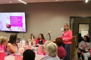 Women of all ages packed the Todd County Library Community Room Saturday to support breast cancer patients and survivors. Just 13 months from her diagnosis, Samantha Boley shared her journey.