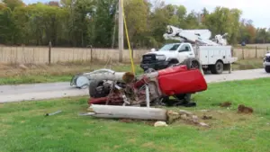 Todd County Sheriff’s deputies say at 1:19 pm, they were called for a car that ran off the road hit a culvert, a mailbox, a tree, and a utility pole before coming to a stop on its top with the pole on the vehicle.