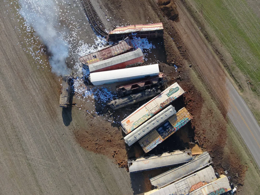 As of Tuesday afternoon, no injuries had been reported — but 31 cars are off the tracks, including at least two carrying molten sulfur, and one of those cars was completely disintegrated. Cleanup, officials say, will require an indeterminate timetable, and both Tress Shop Road and US 41 between Pembroke and Trenton are shut down until further notice.