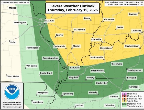 The National Weather Service continues to monitor the threat of severe weather on Thursday, with western Kentucky listed in the slight and marginal risk categories.