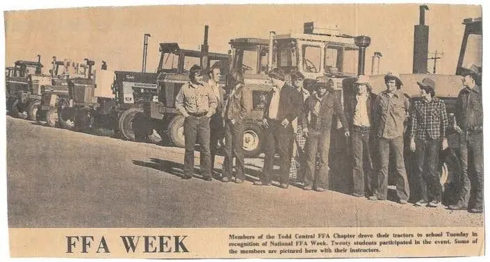 Adding her family has won for several years in the category of oldest tractor, Anna Jo Parmley, the wife of a farmer and the mother and grandmother of four TCCHS grads and several nieces, messaged, “It was and is the most exciting day of the year for FFA and families. Families work on the tractors for weeks so they will be polished and hopefully the oldest tractor there. Students love riding around town and showing their tractors off, always bringing smiles to many students, families, and friends.” Yes, TCCHS’s FFA Tractor Day is alive and well in Todd County. Most Todd Countians will also share it is an event that more than likely will see its 100th year anniversary in 2076!