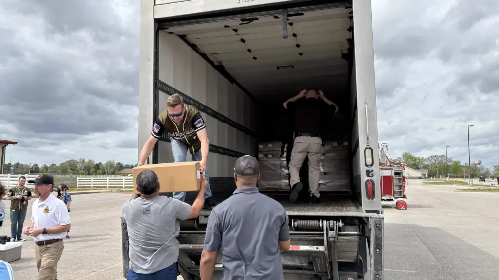 Dozens of Eagle Ambassadors and volunteers gathered in Oak Grove on Thursday for the annual Hams for Heroes distribution.